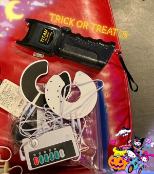 お写真の電流やスタンガンはご主人様が持って来てくださったものです。